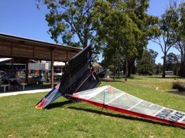 ちなみに初日から25ノットくらい吹いてたけど、ちゃんと出艇してそれなりに走れました。やっぱり自分のフネはいいですね。陸に上がったら、いい走りだったと教祖に褒められ、バテンテンションをチューンしてくれました。普段そっけないだけに、こういうことされると嬉しいんだなー。いかんいかん、ヤツの策略にはまってるw