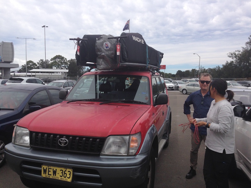 空港までザイクの社長ブライアンに迎えに来てもらい、ルーフトップにモスを積み込みます。そしてこのまま彼の車を2ヶ月も借りるのです。今日ほどザイクジャパンになって良かったと感じたことはありませんw